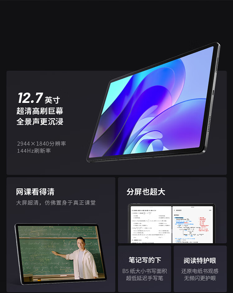 商品名称:联想小新Pad Pro 12.7英寸高通骁龙870影音娱乐办公学习游戏平板电脑莱茵全局护眼 2.9k 144Hz 8+256WIFI 灰