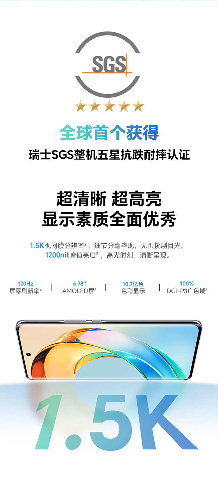 商品名称:荣耀X50 第一代骁龙6芯片 1.5K超清护眼硬核曲屏 5800mAh超耐久大电池 5G手机 8GB+128GB 雨后初晴