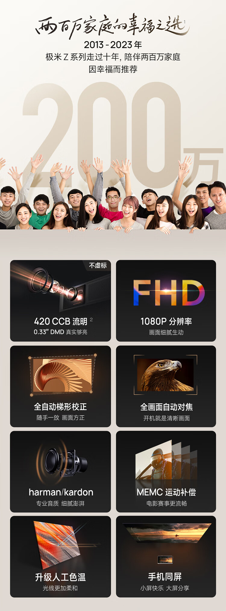极米Z6X 第四代 投影仪家用 轻薄投影机 (真实高亮 哈曼卡顿原装音响 全自动梯形校正) Z6X第四代 新升级