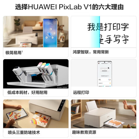 华为(HUAWEI)彩色连供喷墨多功能打印一体机 办公学生家用/打印复印扫描/大墨仓可加墨/无线打印 PixLab V1