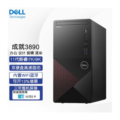 戴尔(DELL) 成就3890 商用办公台式机电脑 高性能设计师制图主机 家用游戏视屏剪辑定制整机 核芯显卡 UHD 750 定制 定制i7-11700K 32G 512G固态+1T