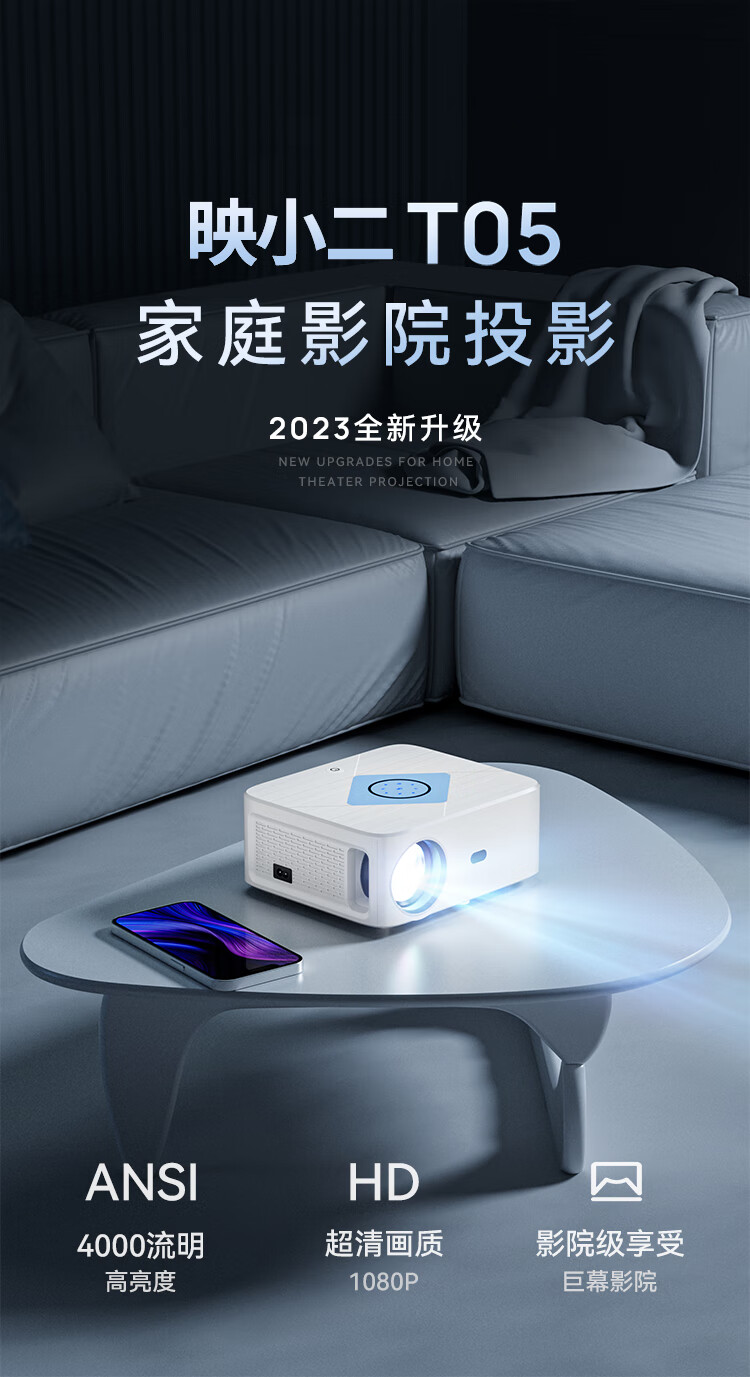 映小二旗舰新款投影仪家用家庭影院4K超高清白天直投大屏幕办公室会议室投影机手机无线投屏吊装投墙