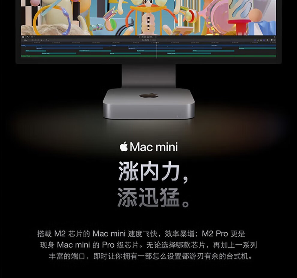 商品名称:苹果(Apple)Mac mini 2023新款m2芯片迷你台式电脑苹果主机盒子 M2芯片【8核+10核】8G-256G